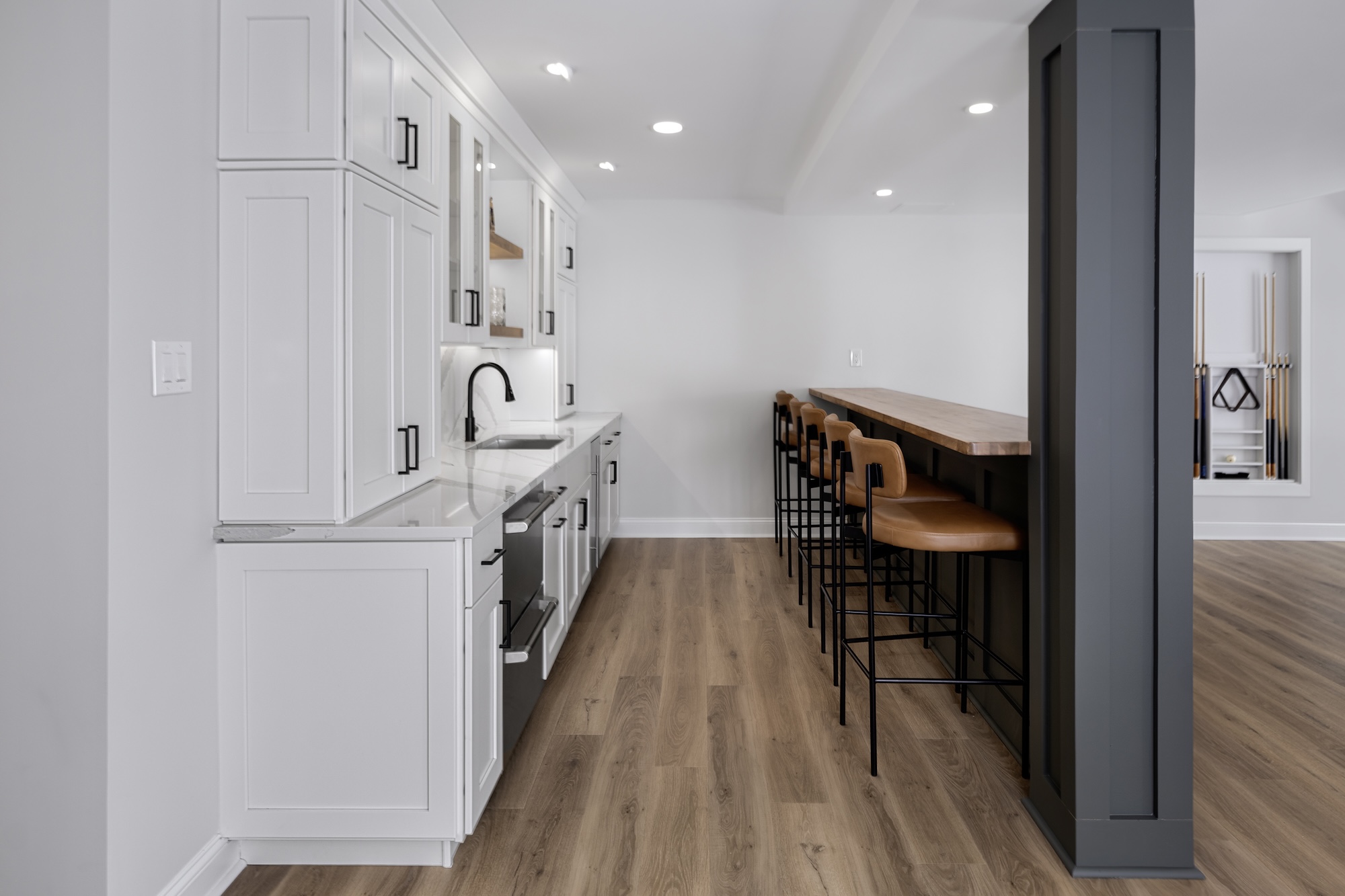 Enhance your home with a basement bar. Our premier basement finishing services turn underutilized, dark, or damp spaces into the heart of your home.